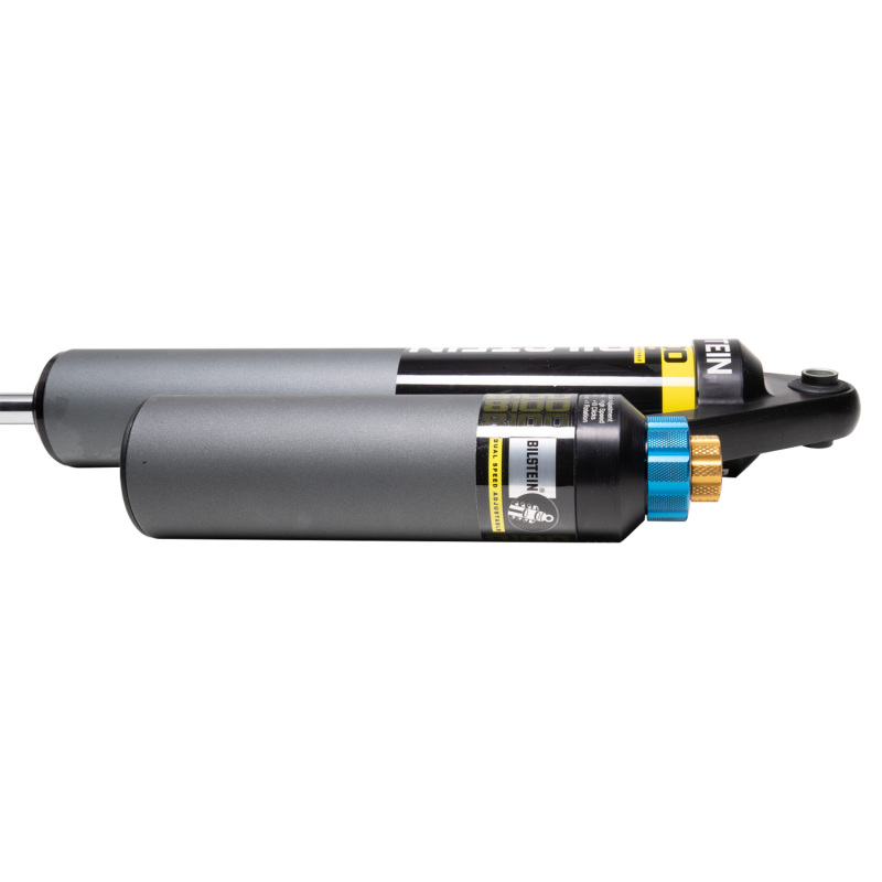The Bilstein B8 8100 (DSA) reservoir shock absorber is an adjustable large bore 60mm (2.65" OD) direct fit solution for lifted trucks and SUVs. Constructed from aerospace quality billet components, the large 60mm ID shock body offers a higher oil volume capacity to control heat while tackling rough road surfaces over long distances. Click adjuster knobs allow easy and precise Dual Speed Adjustment of both low and high speed compression to tailor your ride to any surface. Each B8 8100 (DSA) offers a unique remote or piggyback reservoir solution for an easy, hassle free installation. These shock absorbers feature a monotube design for consistent fade free performance and utilize velocity sensitive digressive valve settings which are tuned for each specific application. The large 60mm piston design offers more comfort and control in all driving conditions. The Bilstein B8 8100 (DSA) will allow you to tame the terrain in comfort.