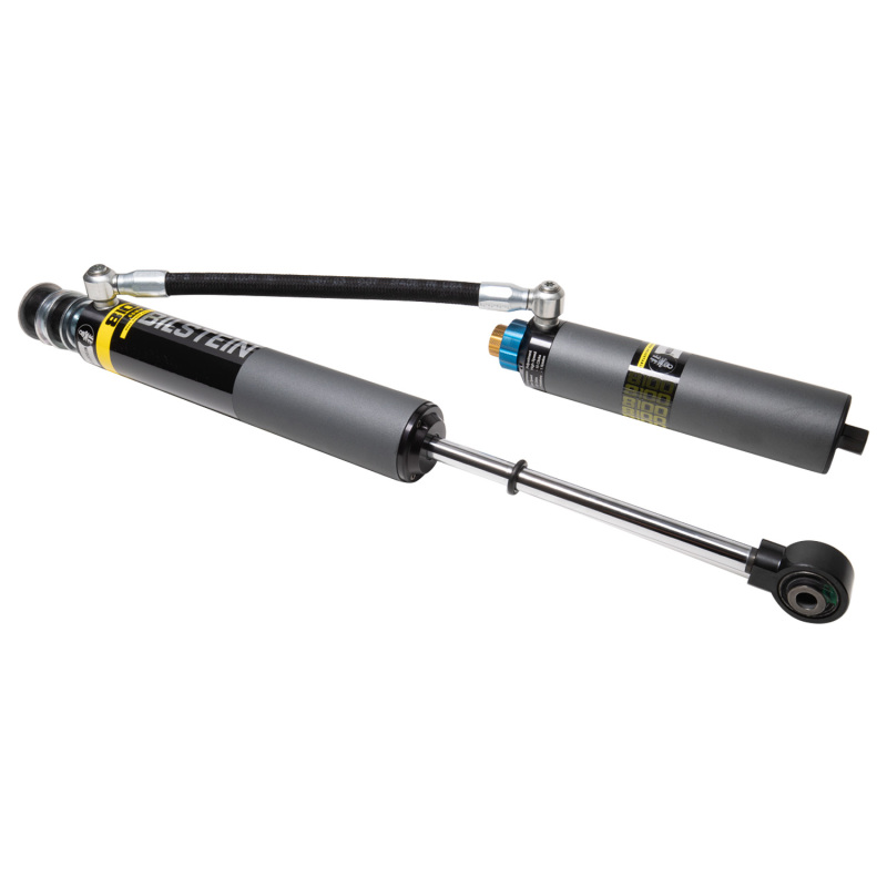 The Bilstein B8 8100 (DSA) reservoir shock absorber is an adjustable large bore 60mm (2.65" OD) direct fit solution for lifted trucks and SUVs. Constructed from aerospace quality billet components, the large 60mm ID shock body offers a higher oil volume capacity to control heat while tackling rough road surfaces over long distances. Click adjuster knobs allow easy and precise Dual Speed Adjustment of both low and high speed compression to tailor your ride to any surface. Each B8 8100 (DSA) offers a unique remote or piggyback reservoir solution for an easy, hassle free installation. These shock absorbers feature a monotube design for consistent fade free performance and utilize velocity sensitive digressive valve settings which are tuned for each specific application. The large 60mm piston design offers more comfort and control in all driving conditions. The Bilstein B8 8100 (DSA) will allow you to tame the terrain in comfort.