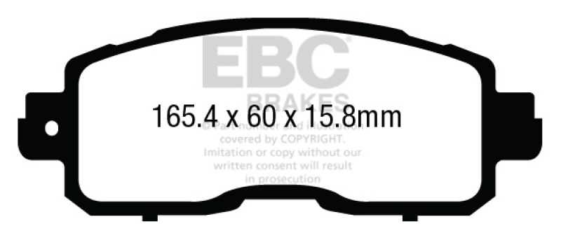 EBC Yellowstuff is an aramid fibre based brake compound with high brake effect form cold and is possibly one of the first ever compounds that can be used for STREET AND TRACK DRIVING. These pads do not require warm up but do get even stronger under the heat of hard driving. These are not a low dust pad and if your desire is for a low dust premium street use pad, you should consider EBC Redstuff.When considering full race use, Yellowstuff has been a strong favourite, having been used for two years in the Swedish Camaro Cup and at numerous other race events where a stock caliper system is fitted.It is also the choice of 90-percent of the Mazda MX5 Miata competitors in the UK race series and has an unblemished record as rotor friendly track pad for vehicles up to 2000 lbs weight or 200 BHP.In the USA the SCCA and NASA drivershave been testing Yellowstuff with feedback and good reports POURING in from a 543 test driver major market proving event with these groups. Read that figure again 543 test drivers.There is no guesswork here.