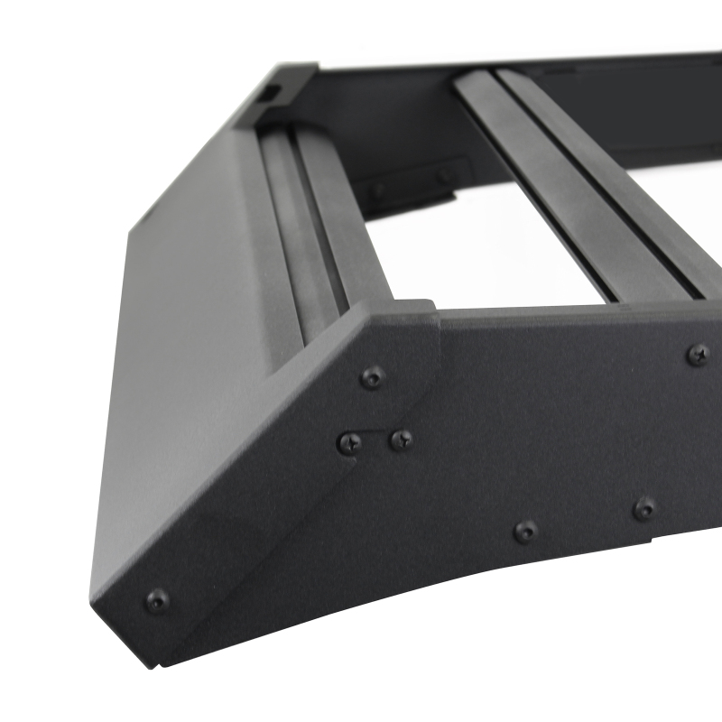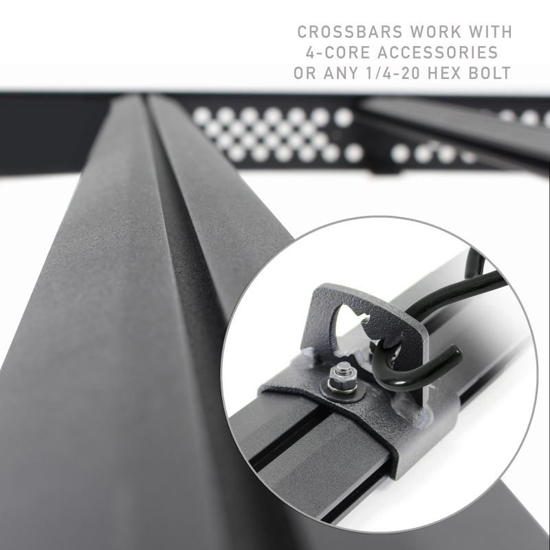 The CEROS Low Profile Aluminum Roof Rack brings cutting edge style and practicality to your truck. The aerodynamic, low profile design contours the vehicle roof’s curves with application-specific fit. The CEROS utilizes Go Rhino’s exclusive 4-CORE crossbars, an extruded track system that can work with any 1/4-20 hex bolt and offers unlimited mounting options for accessories, gear and tools. The frontmost crossbar supports the front fairing and can be used to mount light bars or multiple cube lights. The dropped edge of the fairing allows a single row light bar to remain flush with the frame’s topline, maintaining the sleek, streamlined look. (Note: Lights sold separately.) CEROS Racks come with a Limited Lifetime warranty on materials and construction and a 5 year warranty on the the textured black finish.