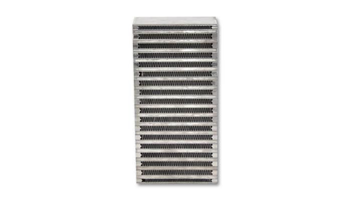 Vibrant Performance Vertical Flow Air to Air Intercooler Cores feature Bar and Plate construction and a unique louvered fin design on the ambient path that maximizes the core's available surface area, and an offset fin design on the charge path allows for minimal pressure loss.
