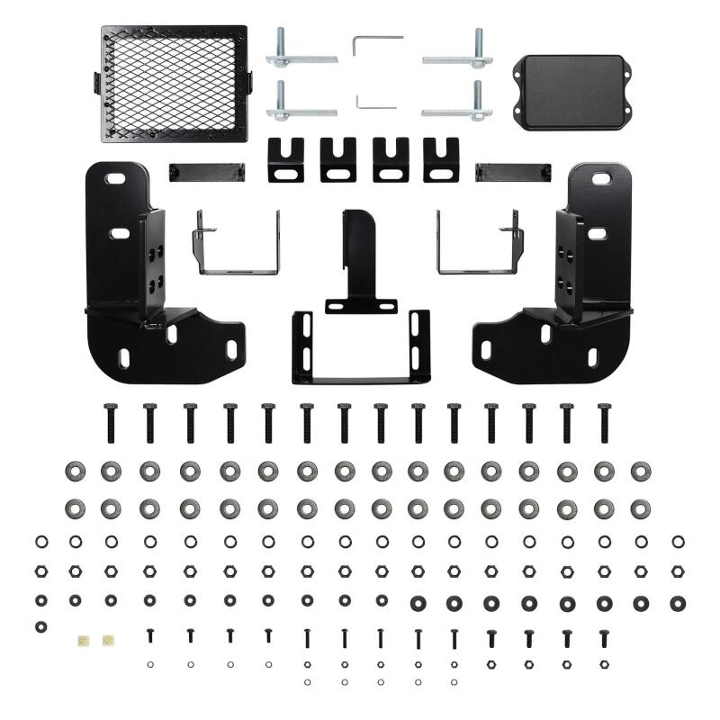 Westins HDX Bandit Bumper combines a heavy duty diamond plate steel bumper constructed of schedule 40 steel pipe with a stylish grille guard featuring 2 in. diameter outer wraparound wings and 2 3/4 in. wide upright rubber strips. Designed to protect headlights, grille, hood and front fenders from road hazards, debris and wildlife damage. Features a stylish metal honeycomb mesh screen, which allows maximum airflow to the intercooler or radiator area while accenting the front end styling with a clean and rugged look. Removable mesh screens allow for factory camera and adaptive cruise control options available on some late model Ford applications. HDX Bandit Bumper includes a built-in 2 in. receiver hitch and (2) heavy duty 9,500 lbs bow shackle mounts, capable of delivering multiple towing options. Compatible for factory fog lamps or LED post mount lights. In addition, some late model Ram and Chevrolet applications feature provisions for factory parking sensors. Bolt-on installation with hardware and mounting brackets included. Available in black powder coat finish.